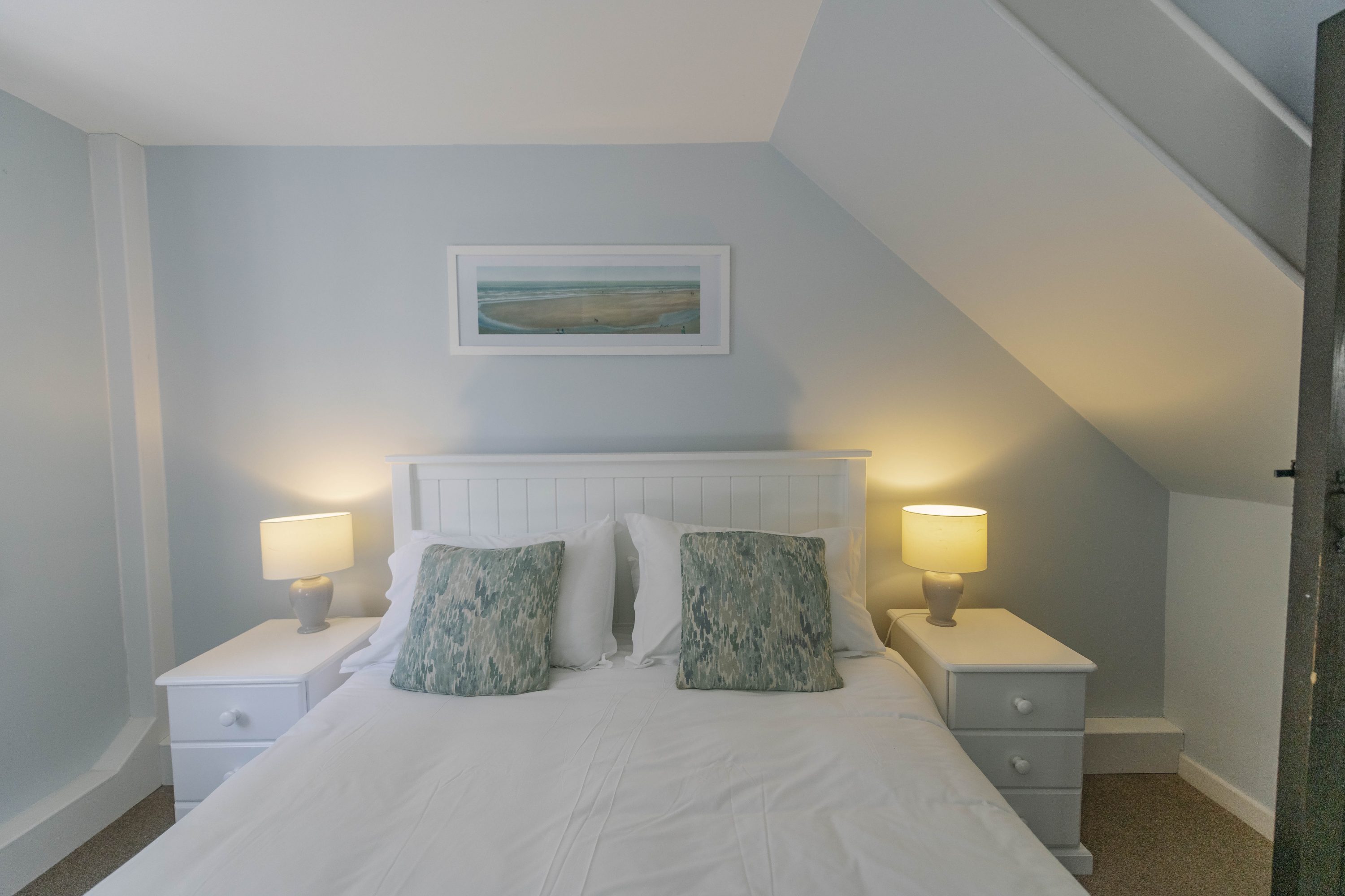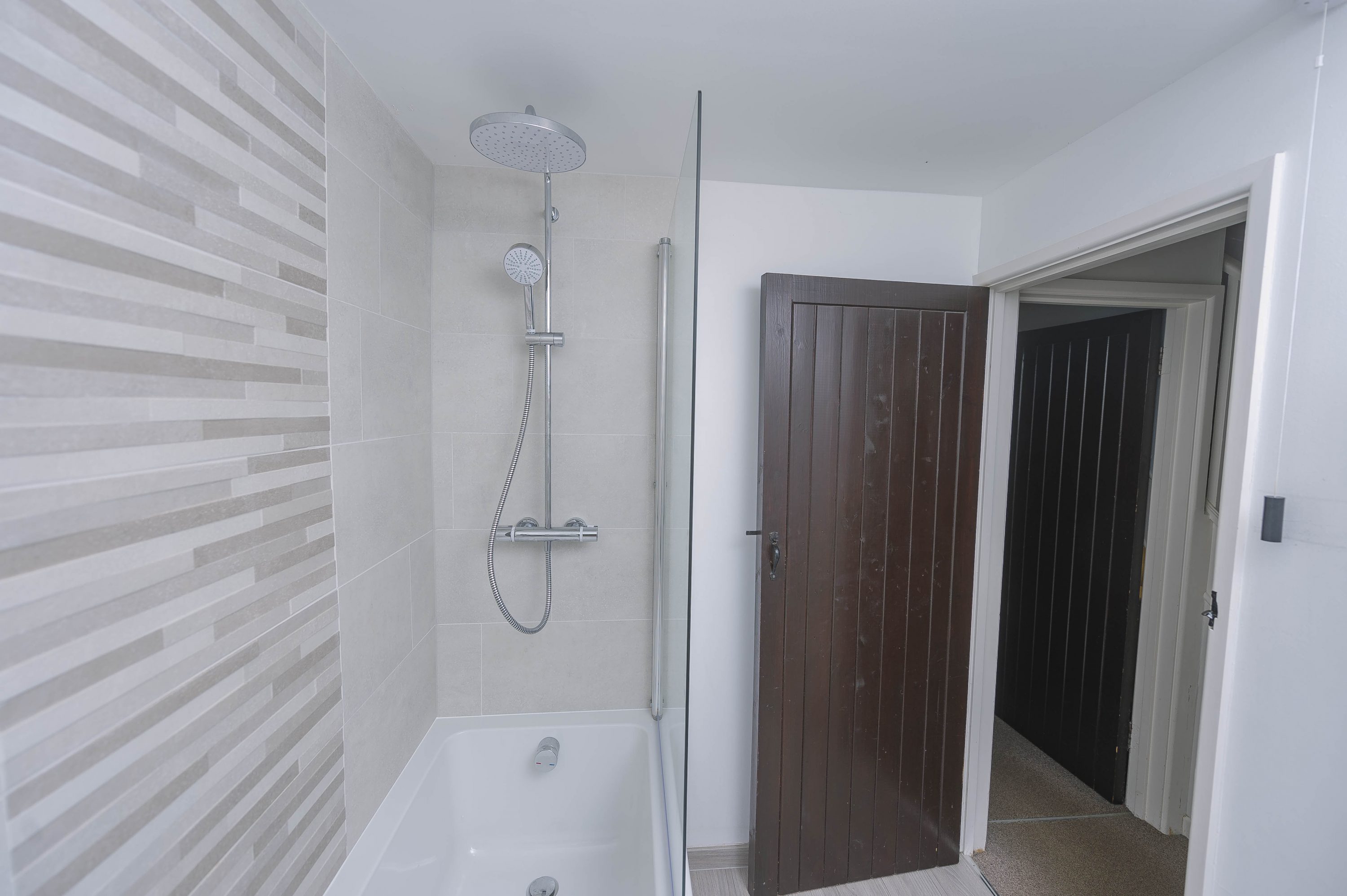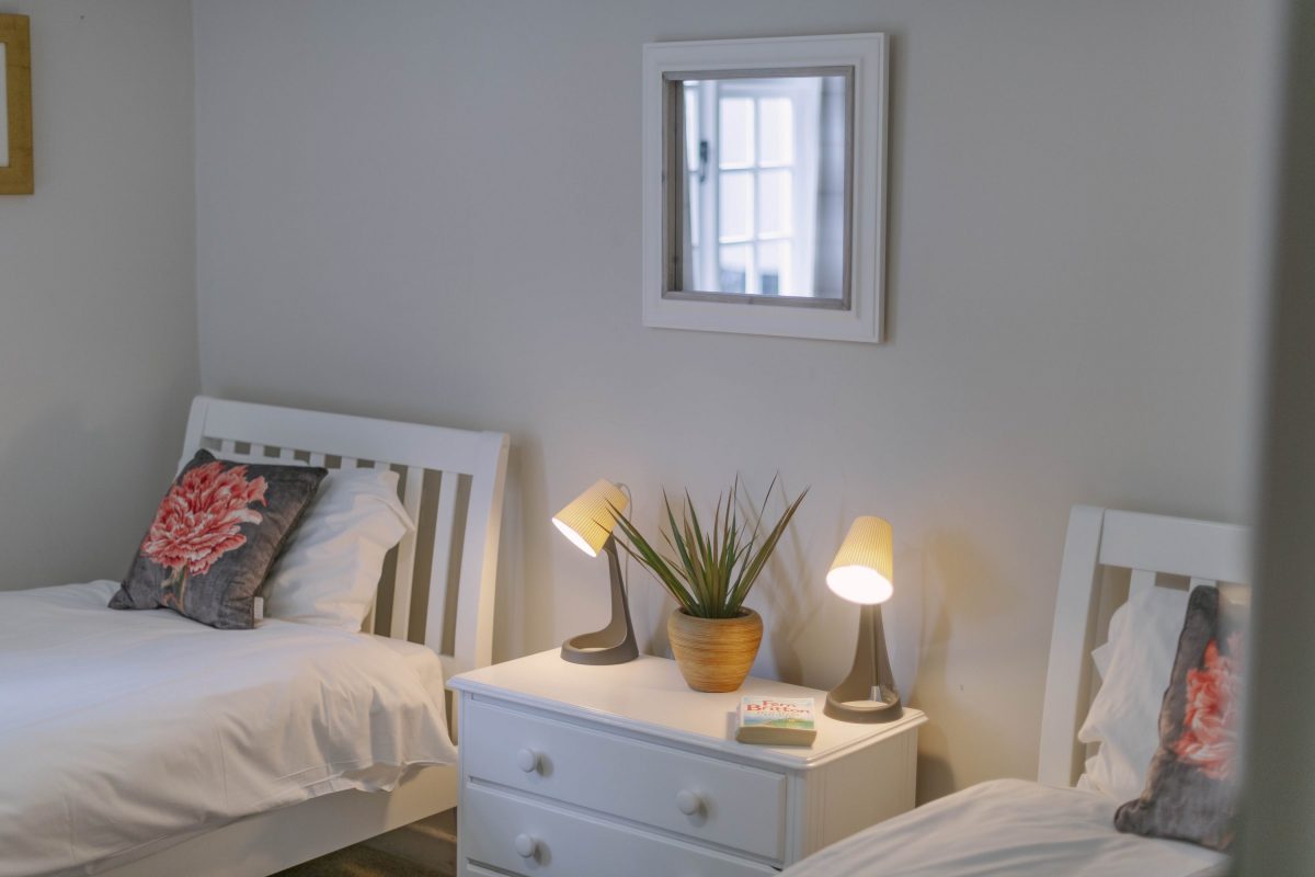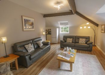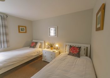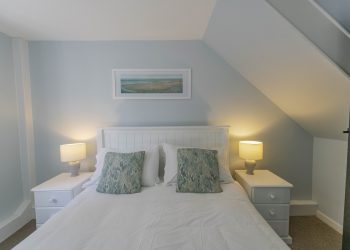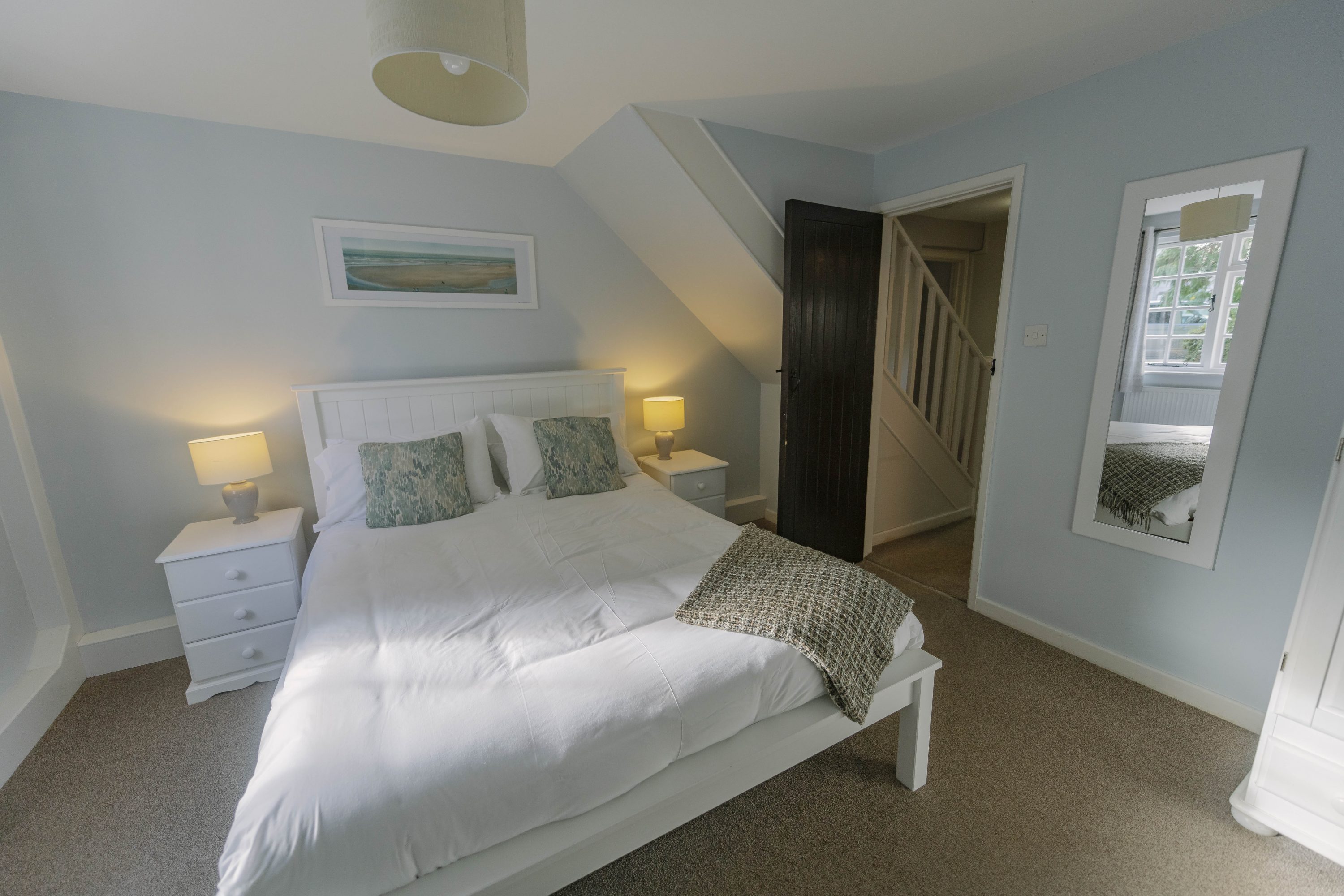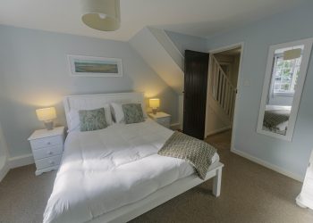 When you enter the cottage straight ahead you’ll see the master bedroom with king size bed and dressing table, there is plenty of room in here to fit a cot should you wish. Next to this there is the newly refitted bathroom with bath, powerful overhead shower and WC. To the right of the stairs there is a double bedroom leading through to the adjoining twin bedroom. Off here you’ll find a useful en-suite shower room.