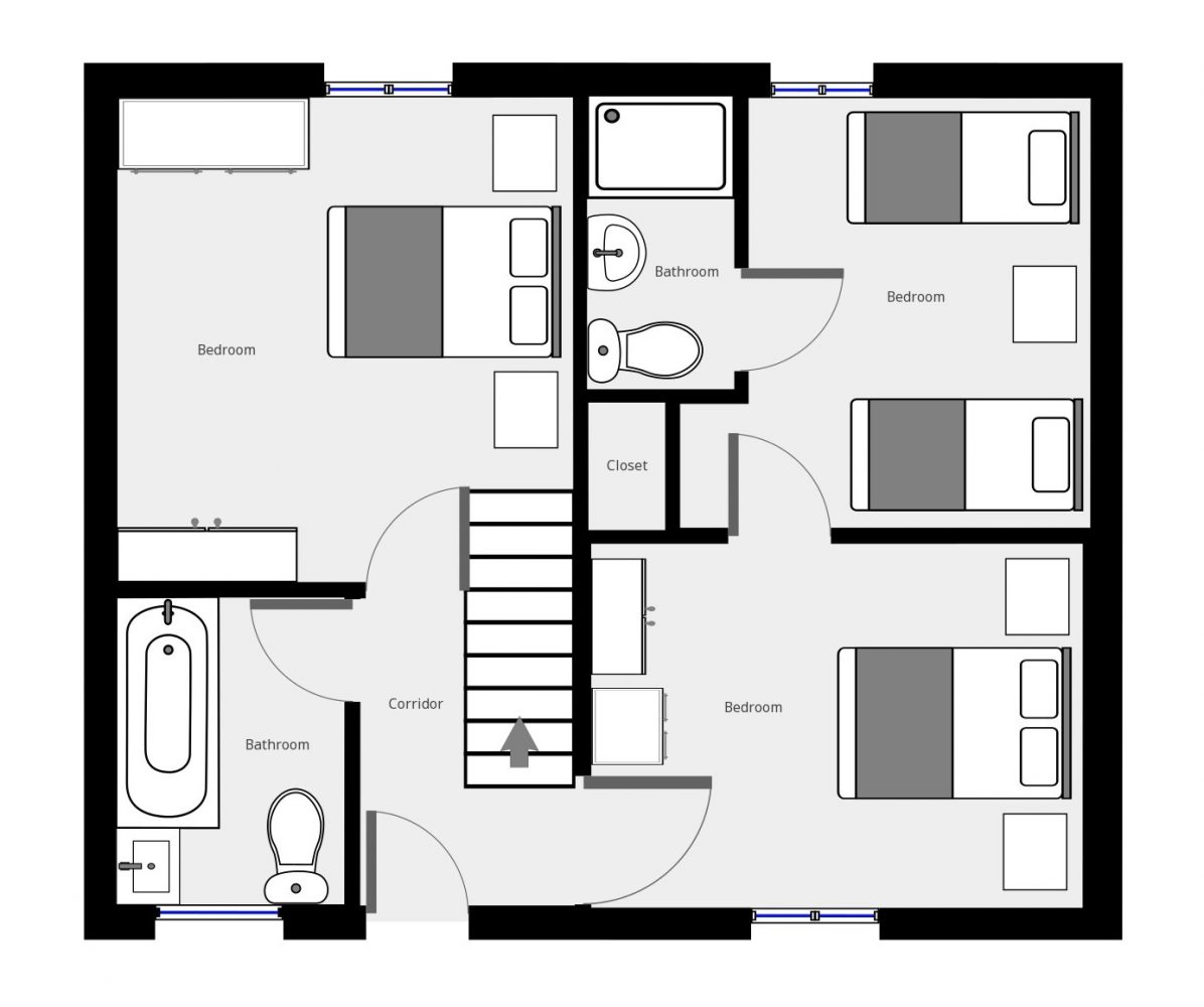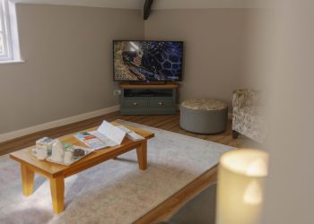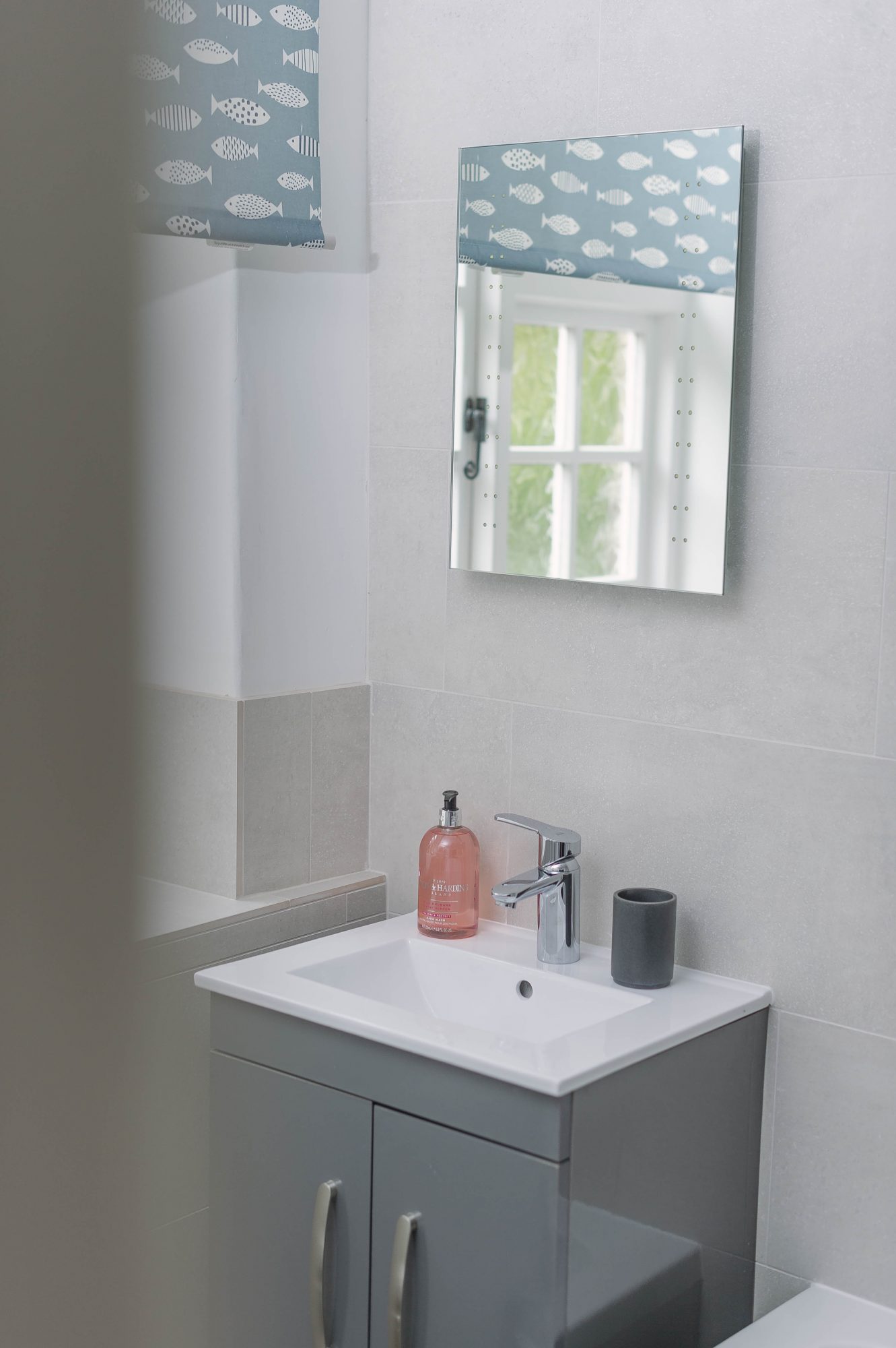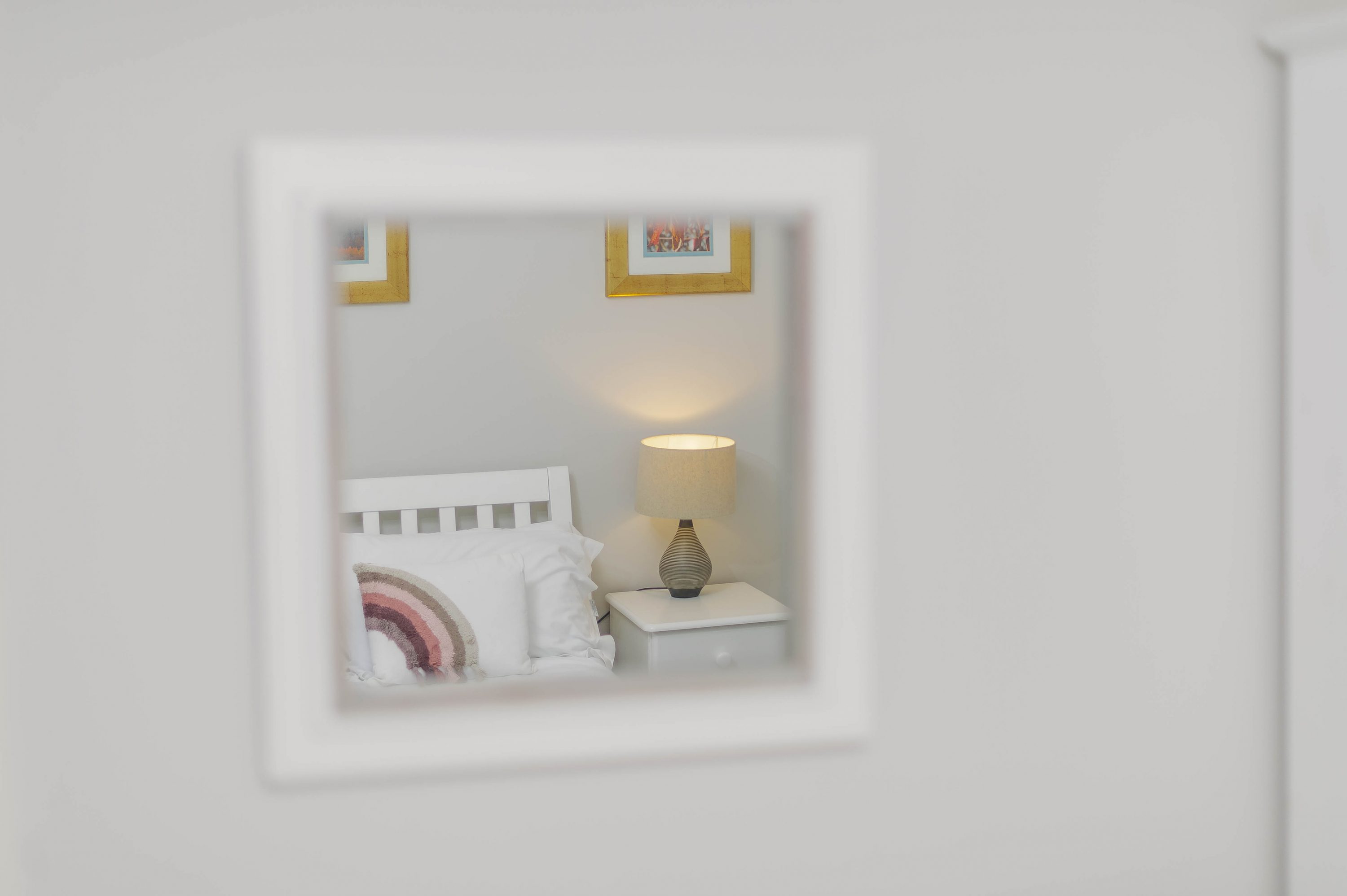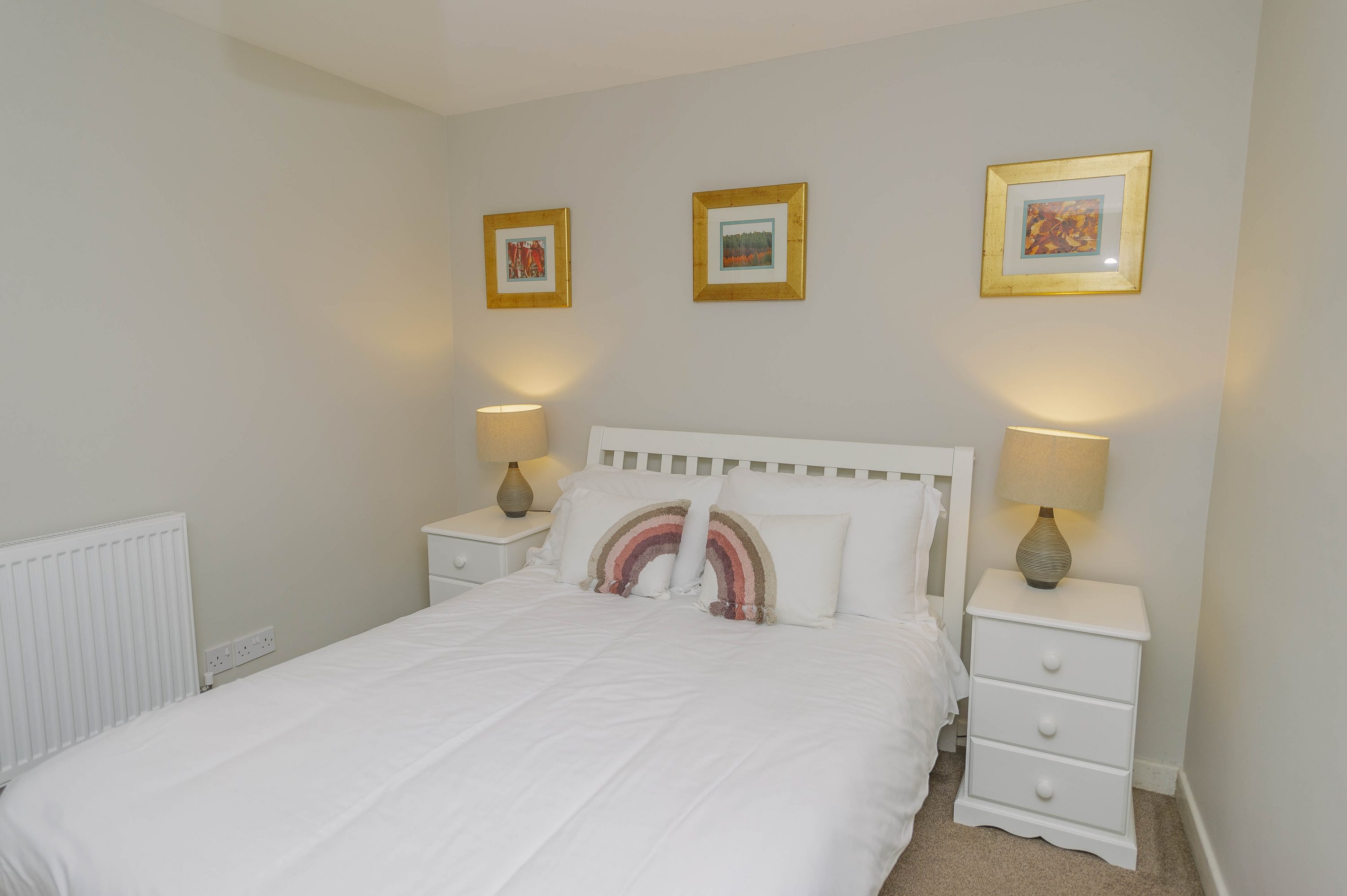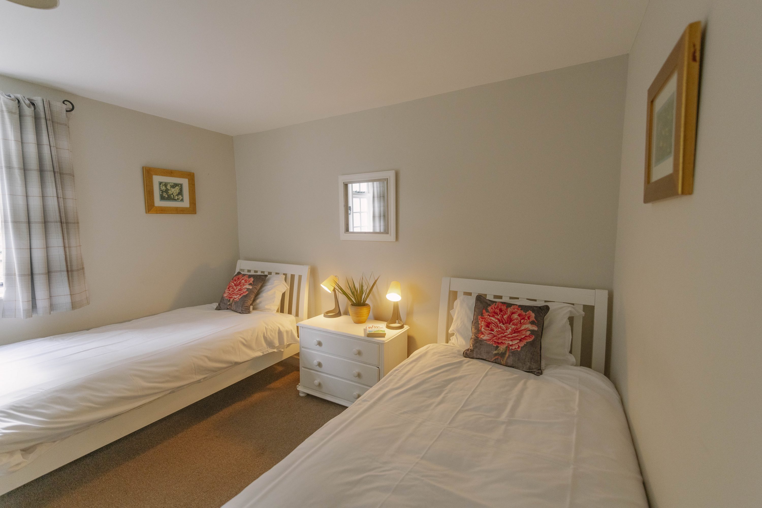 When you enter the cottage straight ahead you’ll see the master bedroom with king size bed and dressing table, there is plenty of room in here to fit a cot should you wish. Next to this there is the newly refitted bathroom with bath, powerful overhead shower and WC. To the right of the stairs there is a double bedroom leading through to the adjoining twin bedroom. Off here you’ll find a useful en-suite shower room.
